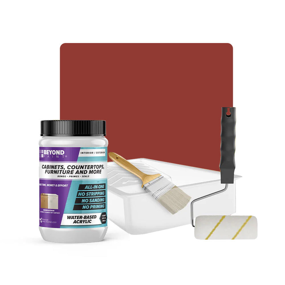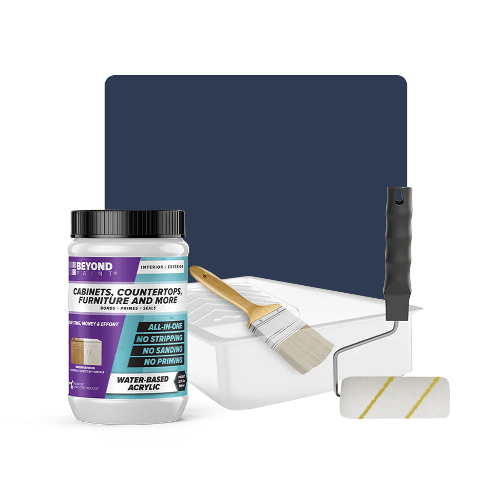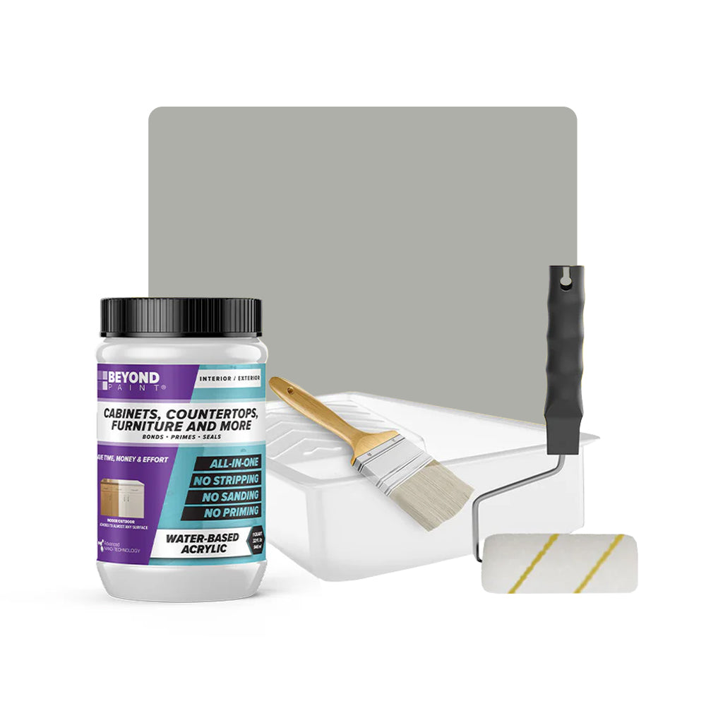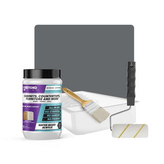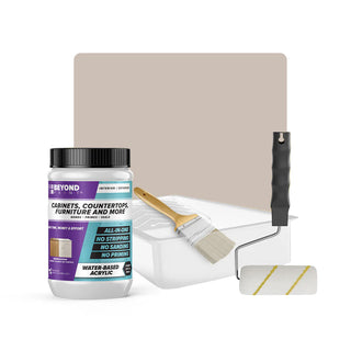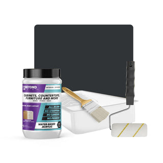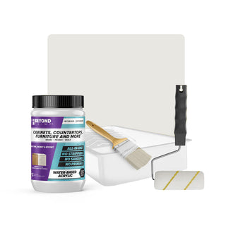 Transform your cabinets and furniture with ease using our All-in-One Refinishing Kit! Designed for convenience and flawless results, this comprehensive kit has everything you need to refresh your home. Included is a quart of Beyond Paint in your desired color, ensuring a custom look that complements your space perfectly, a 2-inch natural soft bristle brush allows for precise detailing, a ⅜-inch microfiber roller with handle ensures smooth and even coverage on larger surfaces, and a paint tray. No need to purchase extra tools or products, our Cabinet and Furniture Refinishing Kit makes it simple, affordable, and fun to transform your home.