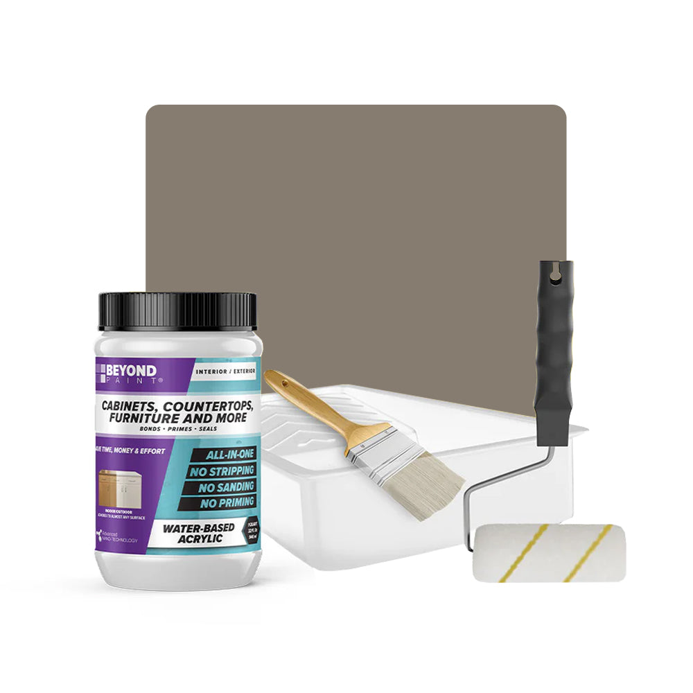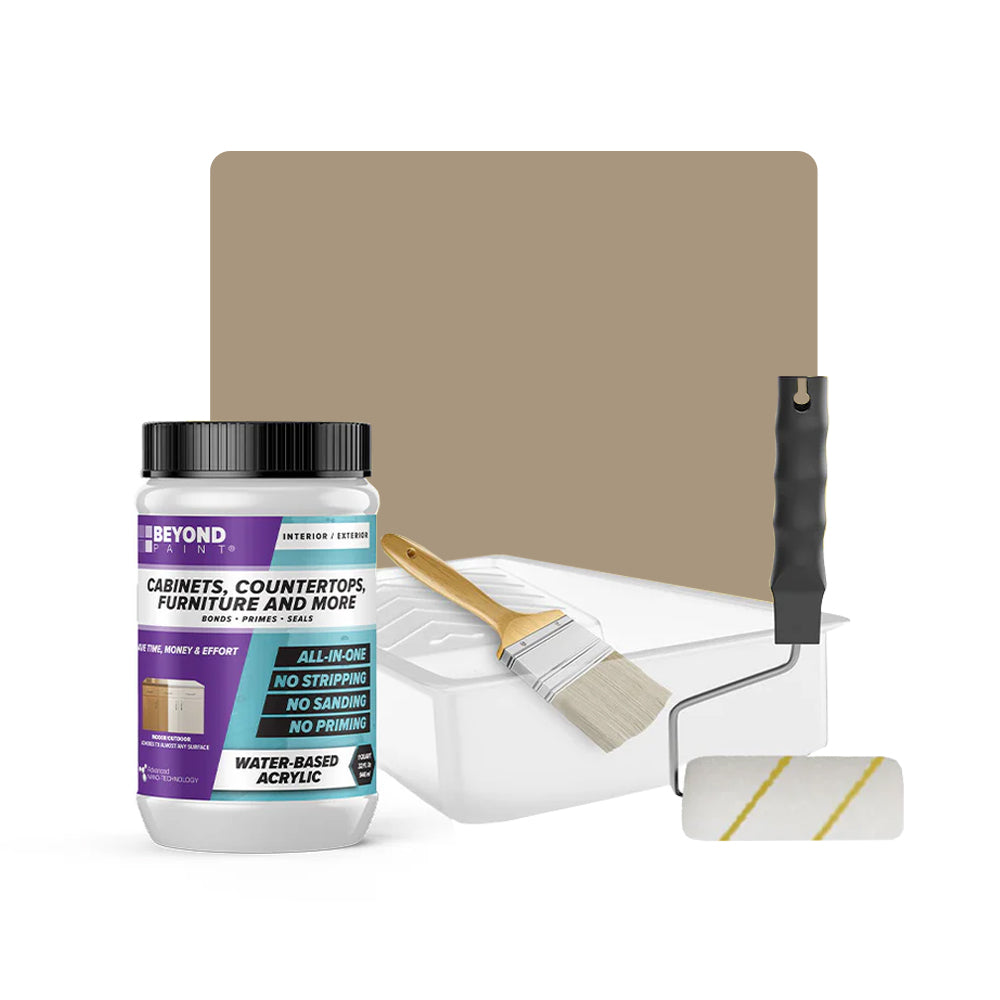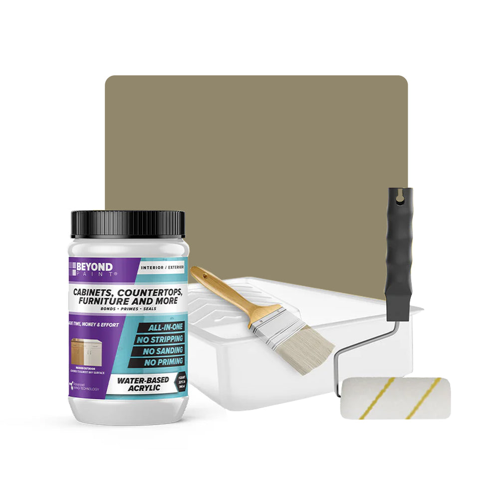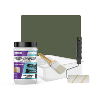 Transform your cabinets and furniture with ease using our All-in-One Refinishing Kit! Designed for convenience and flawless results, this comprehensive kit has everything you need to refresh your home. Included is a quart of Beyond Paint in your desired color, ensuring a custom look that complements your space perfectly, a 2-inch natural soft bristle brush allows for precise detailing, a ⅜-inch microfiber roller with handle ensures smooth and even coverage on larger surfaces, and a paint tray. No need to purchase extra tools or products, our Cabinet and Furniture Refinishing Kit makes it simple, affordable, and fun to transform your home.