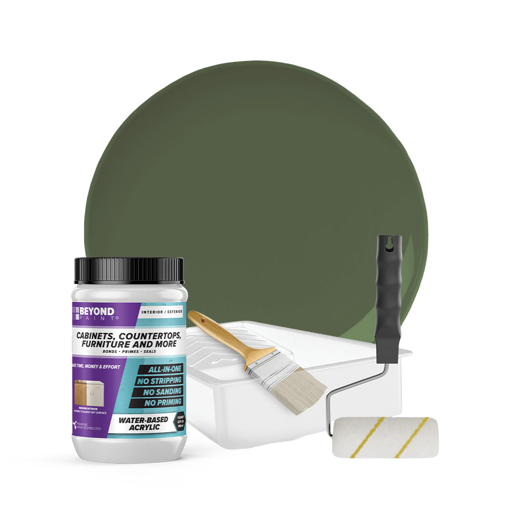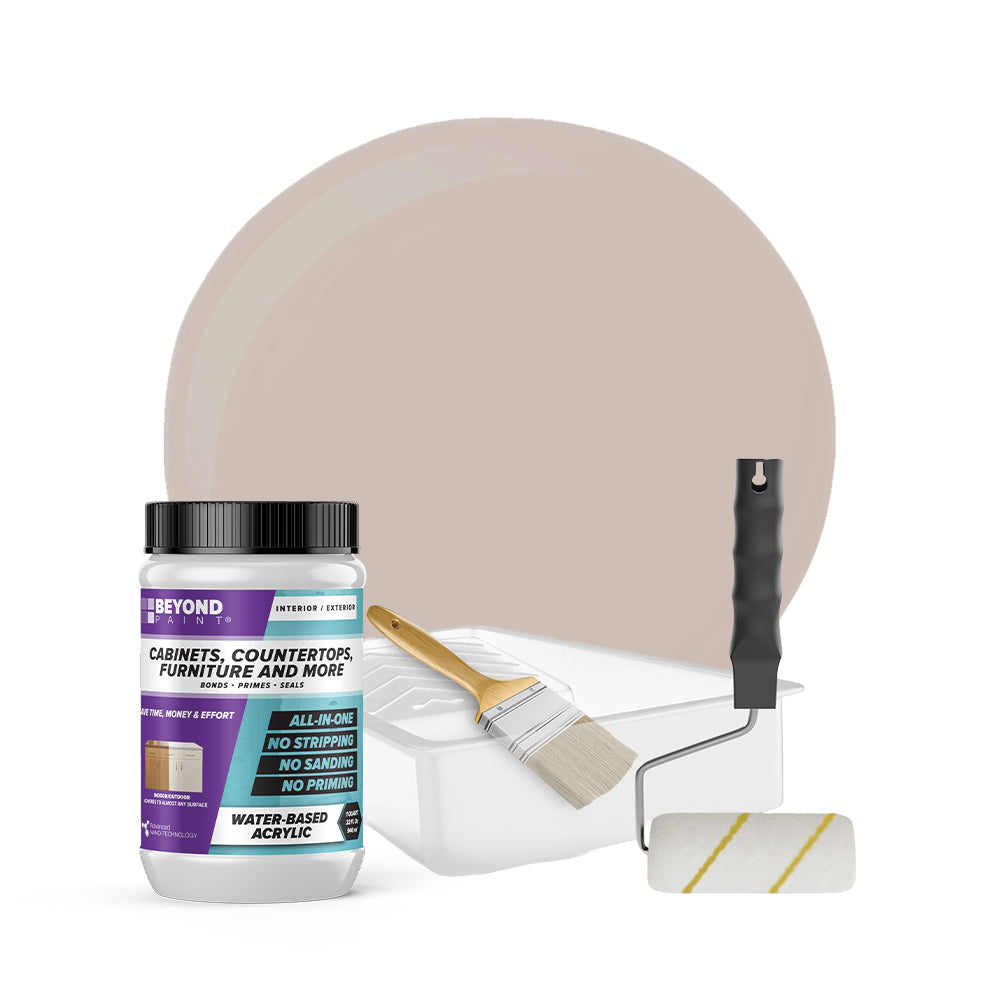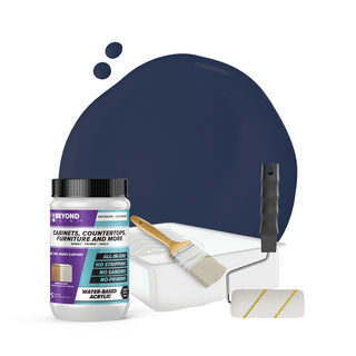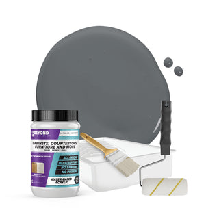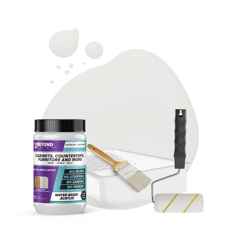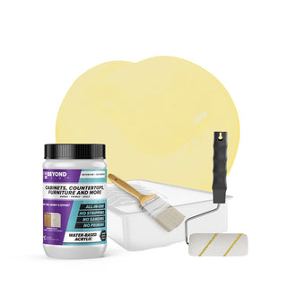 Transform your cabinets and furniture with ease using our All-in-One Refinishing Kit! Designed for convenience and flawless results, this comprehensive kit has everything you need to refresh your home. Included is a quart of Beyond Paint in your desired color, ensuring a custom look that complements your space perfectly, a 2-inch natural soft bristle brush allows for precise detailing, a ⅜-inch microfiber roller with handle ensures smooth and even coverage on larger surfaces, and a paint tray. No need to purchase extra tools or products, our Cabinet and Furniture Refinishing Kit makes it simple, affordable, and fun to transform your home.